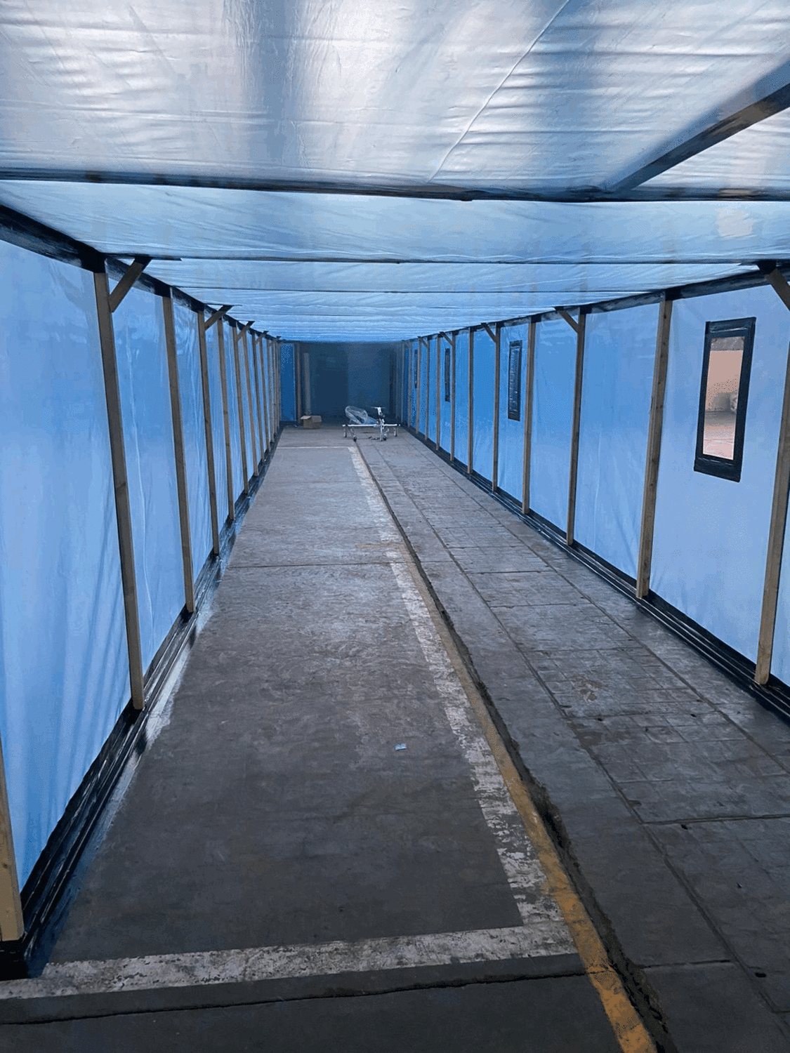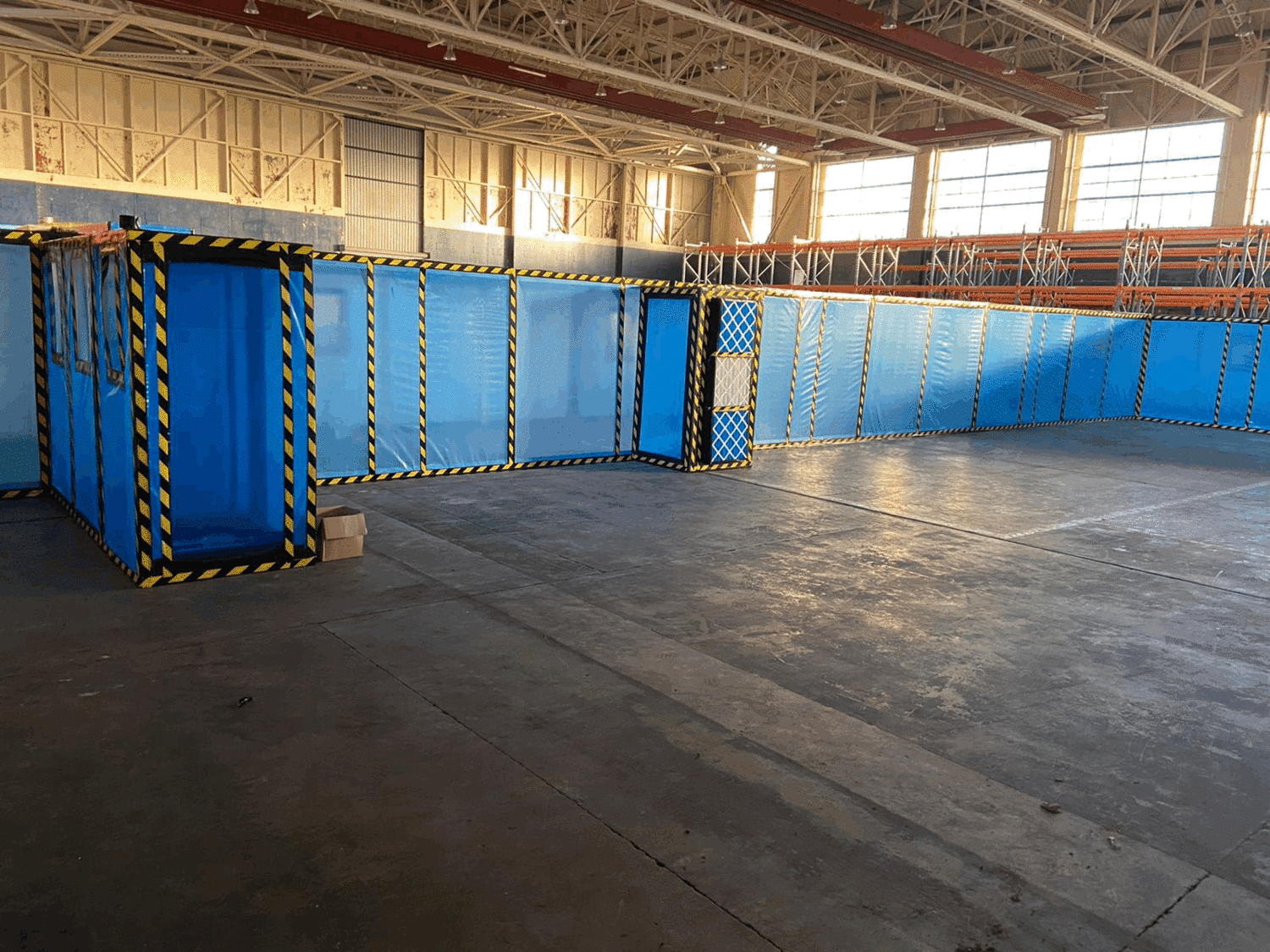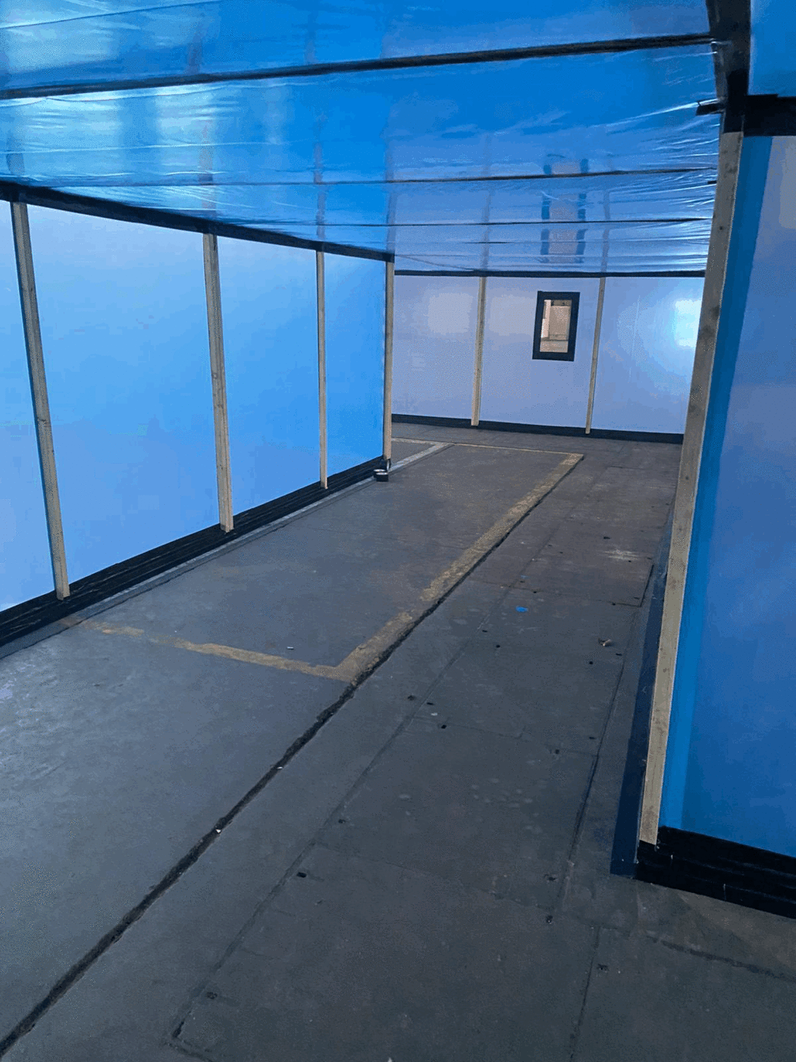 Our team undertook decontamination of thermal insulation debris in ducts within an RAF hangar. This 60 meter long, 2m high enclosure was built over 4 days by a team and decontamination of the ducts was completed over a 10 day period. Duct covers were removed using a hydraulic slab lifter to allow access into the ducts, which were half a meter deep and contained cabling.