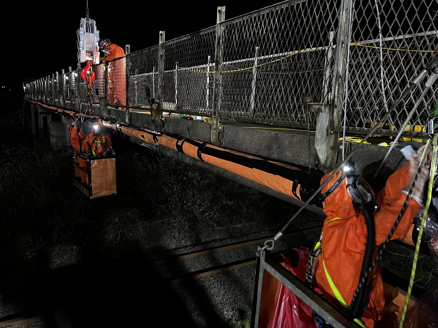 Removal of asbestos pipe over main railway line