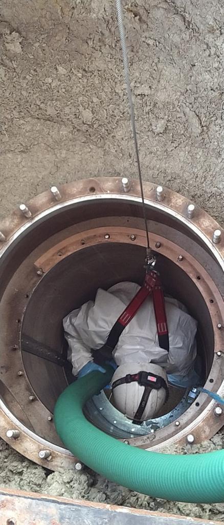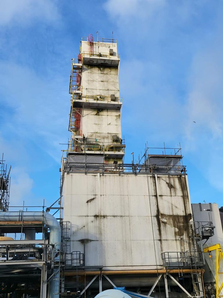 Our specialist trained 4 man team undertook the critical task of removing absorbents from an absorbent vessel for an industrial client. Each RL & LO absorber was first de-lagged in order to expose filters which were removed and serviced ready for re-use. The absorbent material was vacuumed into bags and samples were taken from the vessel ready for analysis. Before replacing the filters and re-lagging each absorber each vessel was inspected to ensure that bed plates were in good condition.